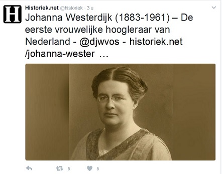 Dit eerste onderwerp heb ik min of meer toevallig uitgekozen. Ik keek op de pagina '1917' van Wikipedia en zag als een van de eerste aanstaande gebeurtenissen van precies honderd jaar geleden de oratie van de eerste vrouwelijke hoogleraar van Nederland. De rest is geschiedenis.