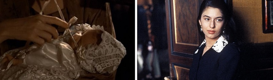 Links Sofia Coppola in The Godfather 1 (1972) - Rechts Sofia Coppola in The Godfather 3 (1990).