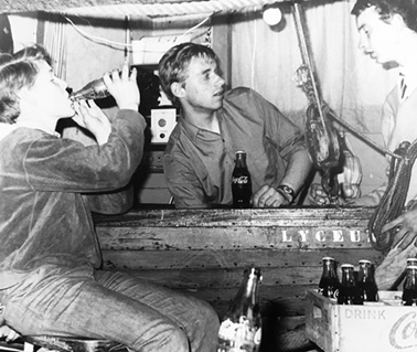 vlnr Huib Snijders, Wouter Pijzel, Wieck Pameijer. Foto Hein Snijders omstreeks 1967/1968 bij het botenhuisbarretje