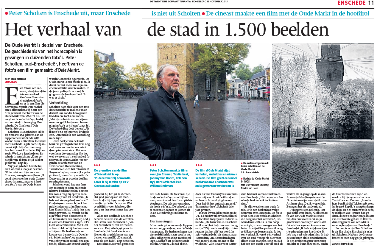 Interview Peter Scholten - Tubantia - 19 november 2015 - d'Oale markt 1860 - 2015 - (De Oude Markt - Enschede)